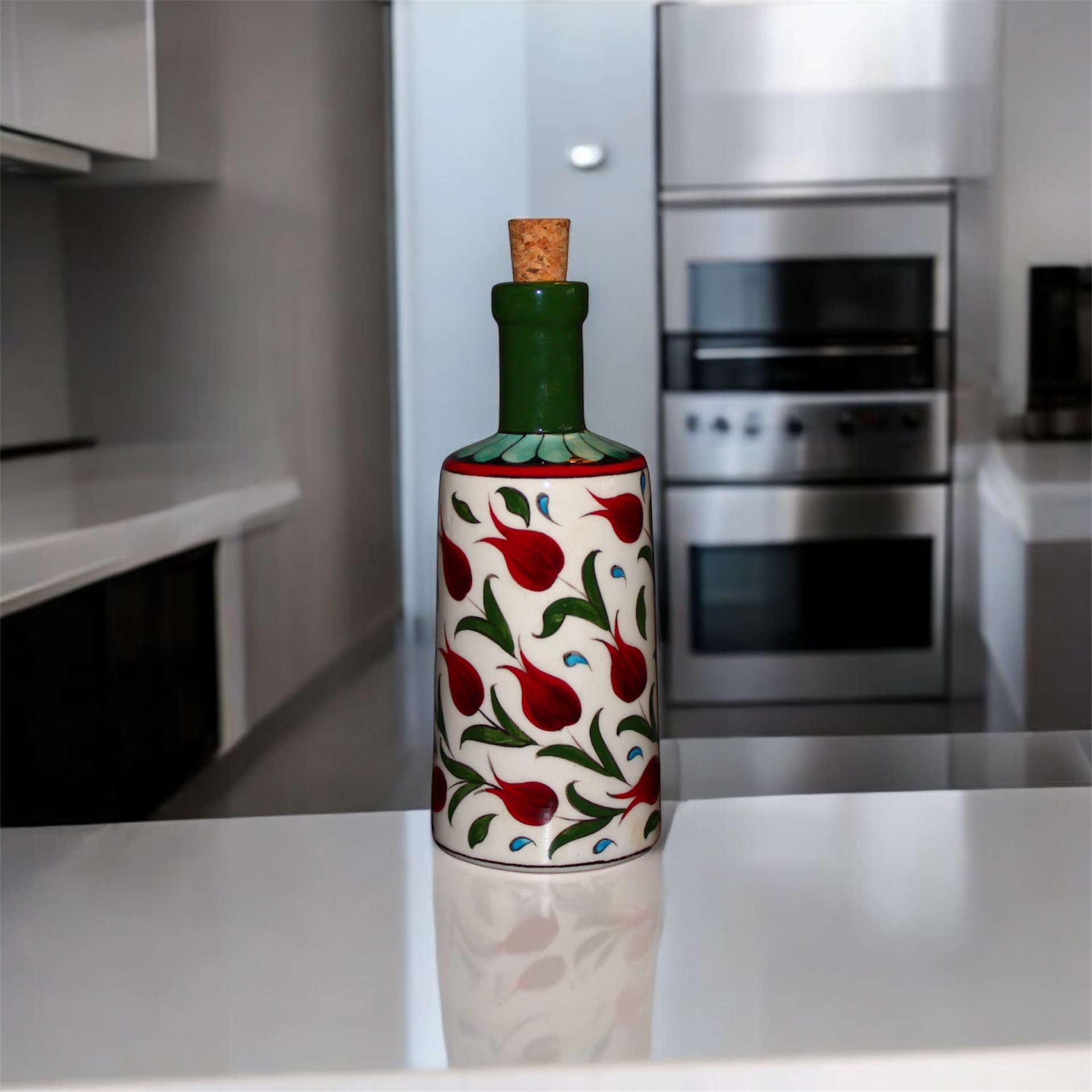 Seramik Çini Desenli Zeytinyağı Şişesi
