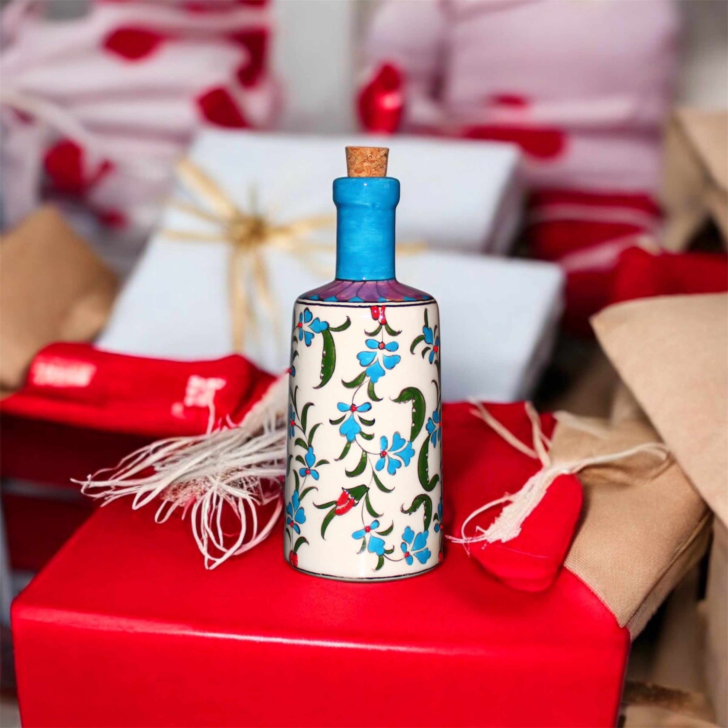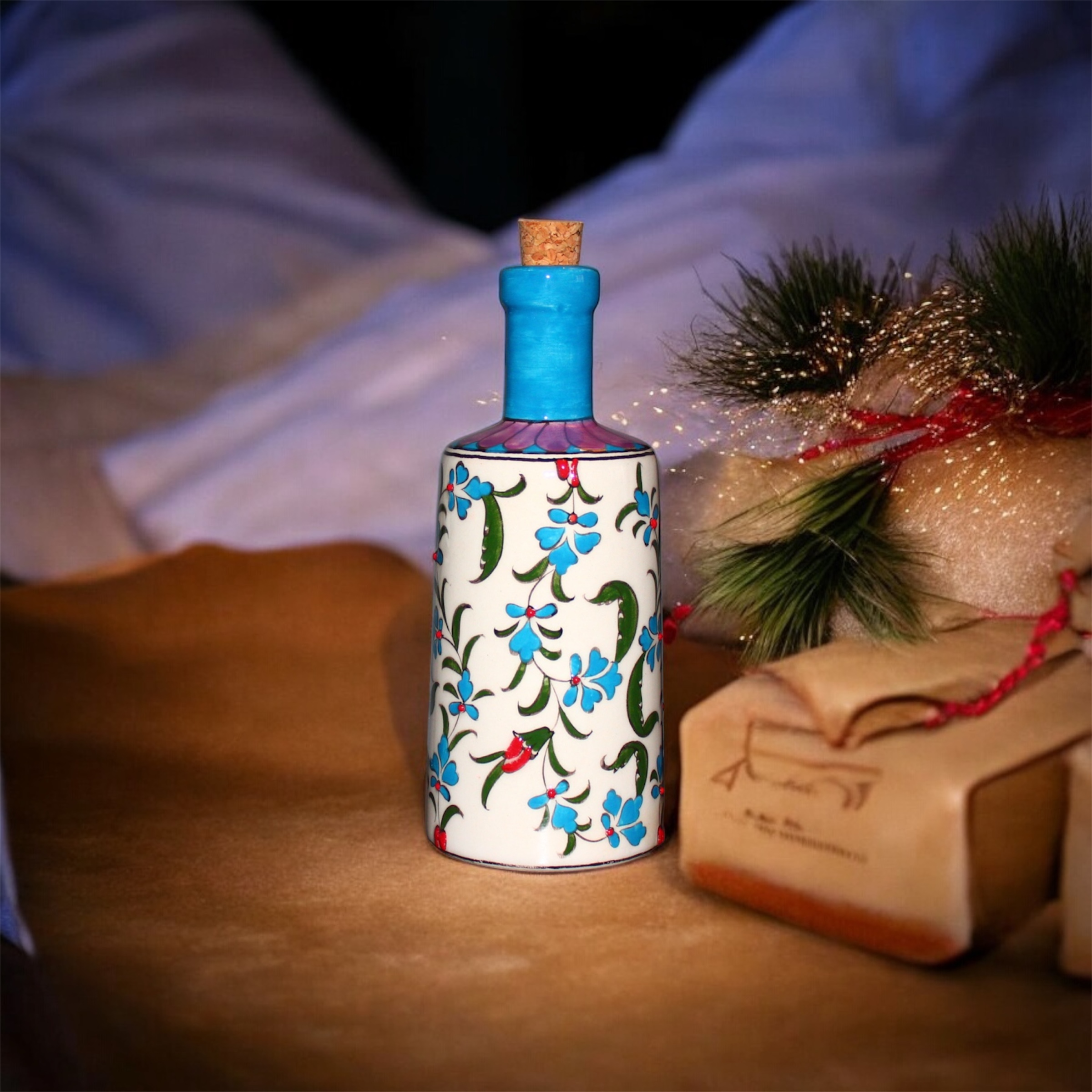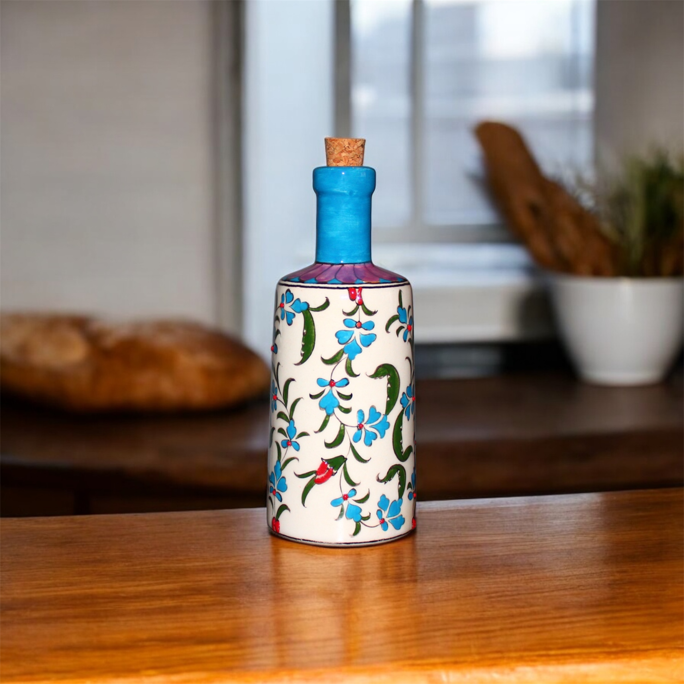 Seramik Çini Desenli Zeytinyağı Şişesi